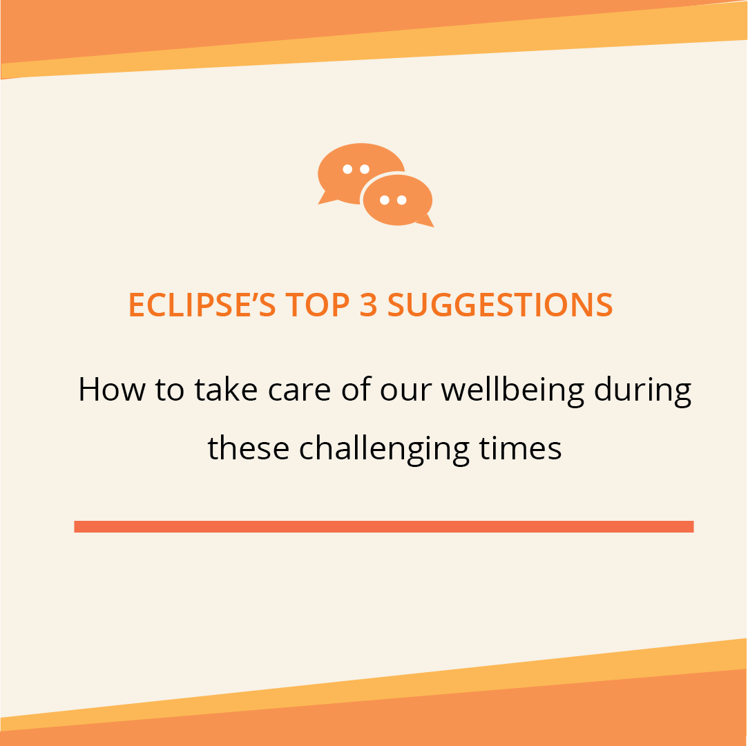 Here are Eclipse’s top 3 suggestions to take care of ourselves during these challenging times, and develop a stronger sense of wellbeing in the process of doing so.